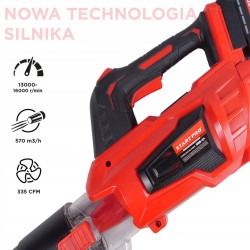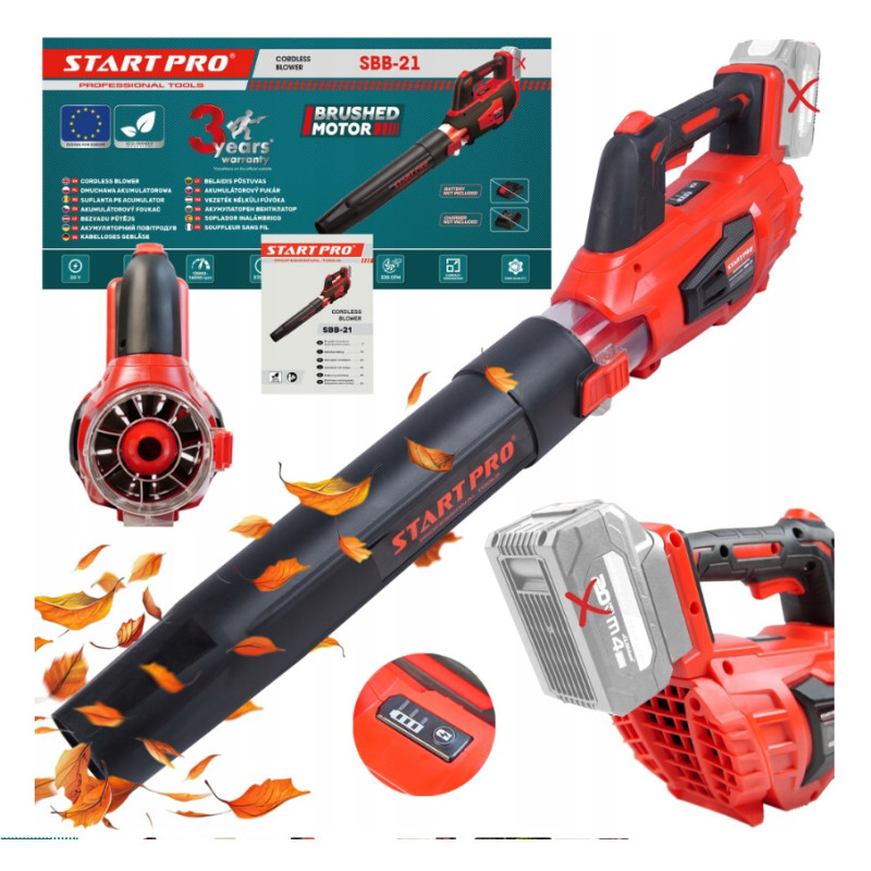 Dmuchawa akumulatorowa StartPro pozwala pracować w dowolnym miejscu – w ogrodzie, na podjeździe czy na działce. Brak przewodu zasilającego oznacza większą mobilność oraz wygodę użytkowania.