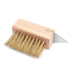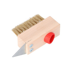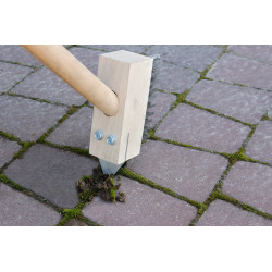 ✨ Szczotka do kostki brukowej ze skrobakiem wykonana została z wytrzymałego drutu stalowego w solidnej oprawie z drewna bukowego. Posiada otwór do zamocowania standardowego trzonka z gwintem (fi 22 mm).Szczotka została specjalnie zaprojektowana do skutecznego czyszczenia szczelin kostki brukowej, czy płytek chodnikowych z mchu, resztek niewielkich roślin i zaśniedziałego brudu. Dzięki swojej budowie usuwa z fug zbędne zanieczyszczenia, nie niszcząc przy tym czyszczonych powierzchni. Dodatkowo wyposażona została w trójkątny, stalowy skrobak, który pomoże usunąć chwasty wraz z korzeniami z trudno dostępnych miejsc między kostkami.Szczotka oprawiona w gwintowany trzonek długości 120 cm.