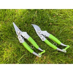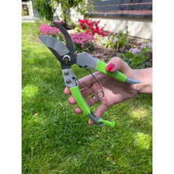 Sekator z zielonej serii charakteryzuje się aluminiowym korpusem pokrytym zielonym tworzywem sztucznym, który jest przyjemny dla dłoni. Sekator ten jest bardzo wygodny i pracować nim można bez rękawic roboczych.